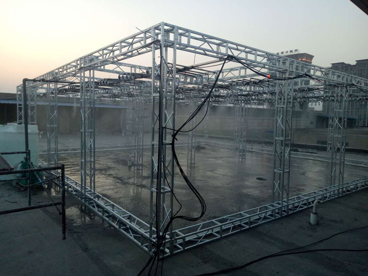2、降雨模擬系統(tǒng)方案:是指在實(shí)驗(yàn)區(qū)建成降雨區(qū),降雨區(qū)為了有效的保證達(dá)了下墊面的實(shí)驗(yàn)得以完成,有效降雨面為10×10米,總100平米,降雨高度為6米。整個降雨可以達(dá)到模擬人工降雨的效果,