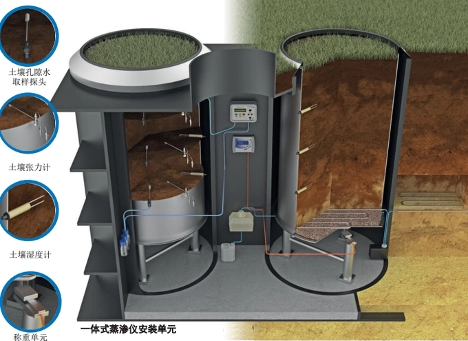 1. 一體式土壤蒸滲儀是由蒸滲儀柱體、稱重系統(tǒng)、數(shù)據(jù)采集系統(tǒng)、土壤水文測(cè)量單元、抽樣系統(tǒng)及系統(tǒng)維護(hù)等構(gòu)成,該系統(tǒng)都集中在一個(gè)緊湊、堅(jiān)固且環(huán)保的蒸滲儀室內(nèi),便于安裝運(yùn)輸;